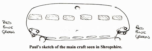 « Un fermier du nom de Paul, résident à la lisière de la forêt de Radnor, décrit son expérience : Une nuit, il observa un objet avec une rangée de fenêtres dans la partie centrale, celles-ci étaient comme des fenêtres de caravane, Il a dit qu'il pouvait y voir une structure à l'intérieur. L’objet a augmenté en luminosité, puis a disparu à la verticale en un clin d'œil de seconde. J’ai beaucoup de témoignages semblables »