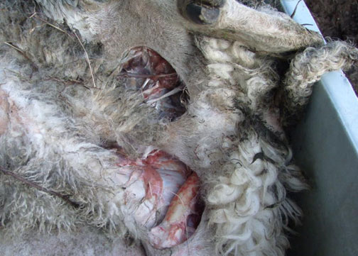 Jeudi 19 Mars 2009, le même éleveur avait retrouvé quatre de ses brebis mutilées dans les même circonstances étranges. Sur l’une des bêtes, les yeux, la langue, les organes génitaux et le rectum excisées, ainsi que la chair autour de la mâchoire (