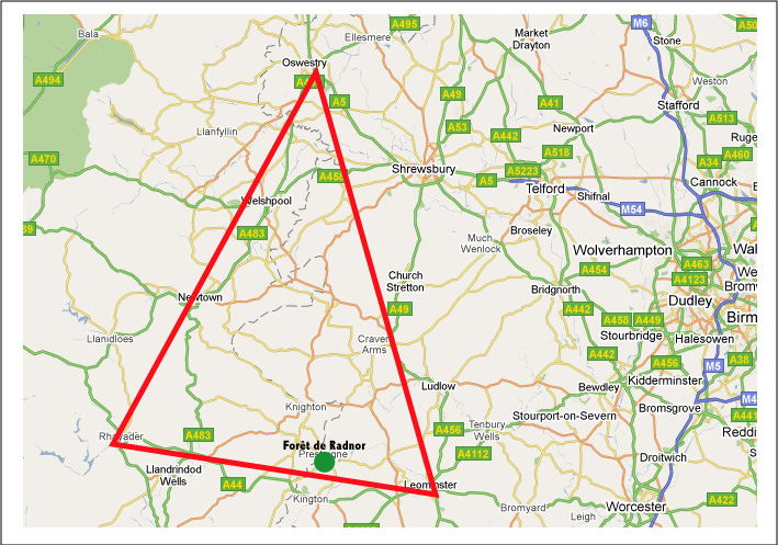 1) ont enquêté sur trois cas de mutilation de moutons dans la forêt de Radnor, située dans la région du Pays de Galles. Il y a un an, en Mars 2009, ces mêmes personnes ont aussi étudié la mutilation de quatre brebis dans une même ferme.